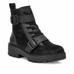 UGG Zorrah boots work for an array of settings. Add some edge to your outfit with this unique double buckle design, featuring a 1.5 inch heel. Crafted from waterproof suede and leather with sealed seams as well as a zipper for ease. Pair this combat-style boot with effortless denim jeans or leather jackets.